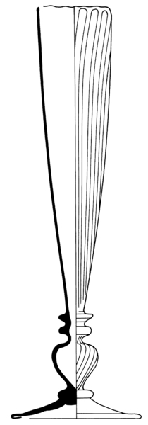 | 4b | fluitglas met verticale ribben of opgelegde draden, geribde balusterstam met één of meer schijfjes, varierend van dikte, op de overgang van kelk naar baluster en/of van baluster naar schijfvormige voet, voet met pontilmerk |