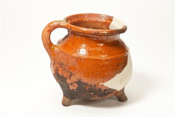| 4b vorm | bolle grape met ribbel op schouder en hoge uitstaande rand met knik naar schouder, poten |