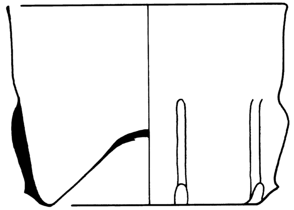 | 4b vorm | cilindrische beker met sterk uitspringende verticale ribben, opgestoken bodem met pontilmerk |