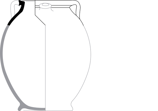 | 4b vorm | bolle (tuit)pot met inwendig met een scherpe knik afgezette en uitwendig een vierkante rand, standring |