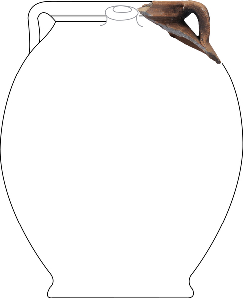 | 4b | bolle (tuit)pot met inwendig met een scherpe knik afgezette en uitwendig een vierkante rand, standring |