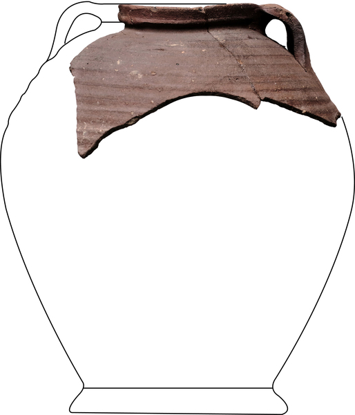 | 4b | bolle (tuit)pot met inwendig met een scherpe knik afgezette en uitwendig een vierkante rand, standring |