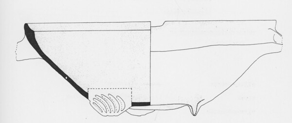 | 4b | bolle kom met iets naar binnen gebogen aan bovenzijde afgeplatte rand (met geul), lobvoeten |