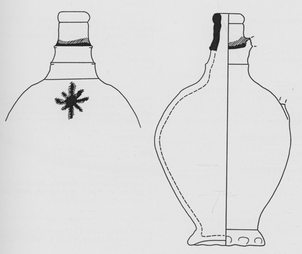 | 4b vorm | P-kruik: zeer bolle fles met hoge hals met ribbels, standring |