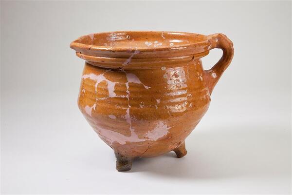 | 5d diversen | ondergang schip na 1685; bij pootjes lichte roetaanslag, sterke slijtage aan pootjes, slijtage t.g.v. schuren in het schip bij oor en rand, zeepokken; schenklip |