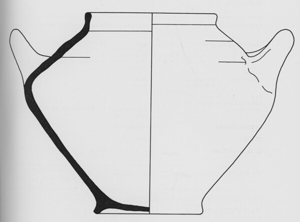 | 4b | bolle pot met hoge schouder en opstaande lip met dekselgeul, standring |