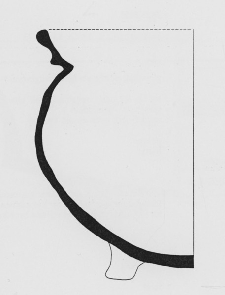 | 5d | roetaanslag op buitenkant, lichte gebruikssporen (slijtage) op pootje; waarschijnlijk twee-orige grape |