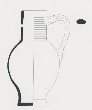 | 4b | bolle kan met hoge schouder en hoge cilindrische hals, gegroefde hals, standvoet |