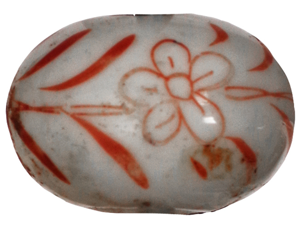 | 5c decoratie | floraal motief in bovenglazuur email |