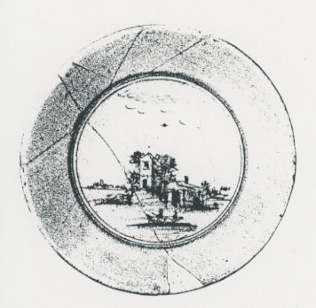 | 5c | op spiegel: huis aan een rivier blauw |