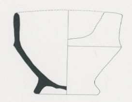 | 4b | vierkante vuurtest met scherpe knik bodem-wand en afgeronde (verdikte) rand, standring |
