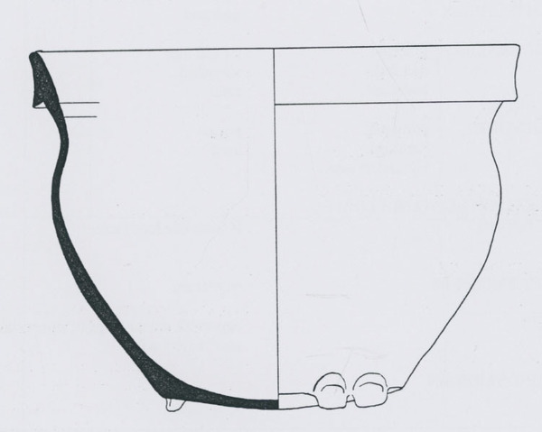 | 4b | bolle kom met ingesnoerde hals en driehoekig verdikte rand of kraagrand, lensbodem met lobvoeten |