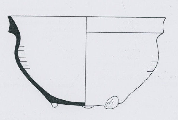 | 4b | bolle kom met ingesnoerde hals en driehoekig verdikte rand of kraagrand, lensbodem met lobvoeten |