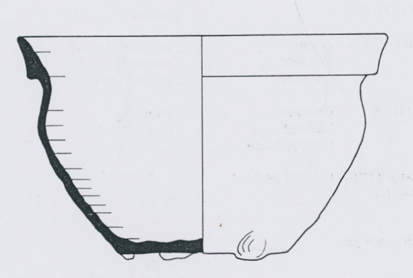| 4b | bolle kom met ingesnoerde hals en driehoekig verdikte rand of kraagrand, lensbodem met lobvoeten |