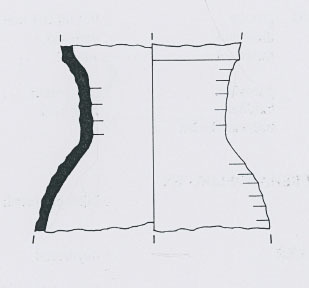 | 4b | zeer bolle kan met trechtervormige hals en manchetrand, met en zonder ribbels op buik en schouder, geknepen standring |