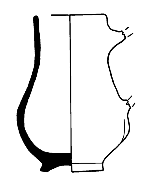 | 4b vorm | wijdmondige kan met buik geleidelijk overgaand in cilindrische hals, verticaal oor, standvoet |
