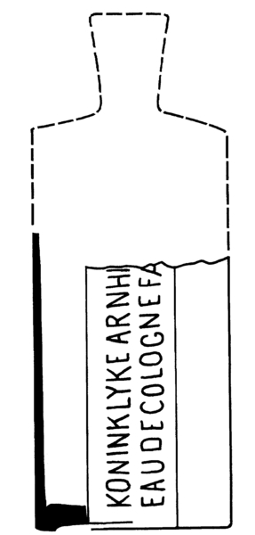 | 5c decoratie | tekst: KONINKLYKE ARNH(EMSCHE) EAU DE COLOGNE FA(BRIEK) |