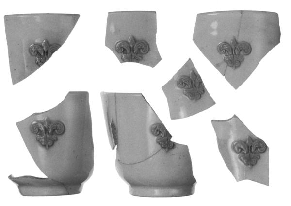 | 5c decoratie | uitwendig: lila appliques met Franse lelie paars |
