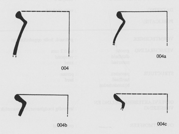 | 4b | buikige pispot met afgeronde buikknik en naar buiten geknikte verdikte rand met platte bovenzijde en dekselgeul, holle bodem |