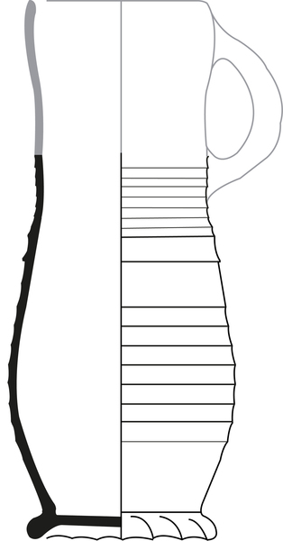 | 4b | lage slanke bekervormige kan met kraag op halsaanzet en rechte rand, op standring |