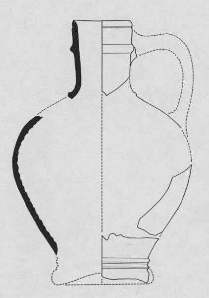 | 4b | bolle kan met hoge hals en kraagrand, ribbel op schouder, standvoet |