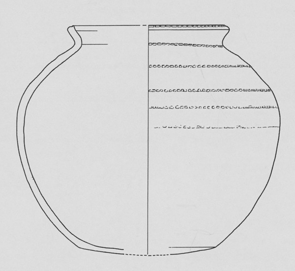 | 5c | 6 lijnen van eenvoudige radstempel op rand en schouder; radstempel bestaat uit een enkelvoudige lijn van vierkante blokjes, stempelfrequentie van 6 tot 7 blokjes per 3 cm |