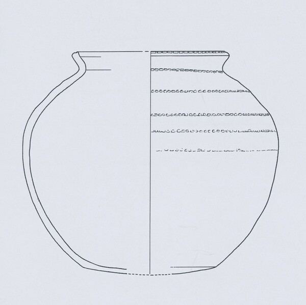 | 5c | 6 lijnen van eenvoudige radstempel op rand en schouder; radstempel bestaat uit een enkelvoudige lijn van vierkante blokjes, stempelfrequentie van 6 tot 7 blokjes per 3 cm |