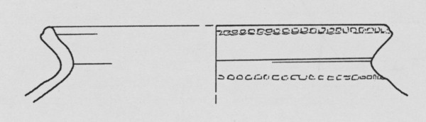 | 5c decoratie | eenvoudig radstempel op rand en schouder; radstempel bestaat uit een enkele lijn van vierkante blokjes; stempelfrequentie van 6 tot 7 blokjes per 3 cm |