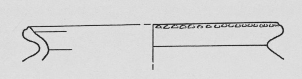 | 5c decoratie | eenvoudig radstempel op rand en schouder; radstempel bestaat uit een enkele lijn van vierkante blokjes; stempelfrequentie van 6 tot 7 blokjes per 3 cm |