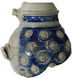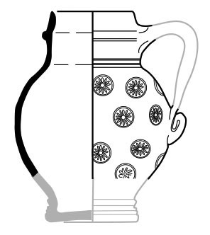 | 4b | zeer bolle kan met wijde hals met kraagrand, ribbel op halsaanzet, standvoet |