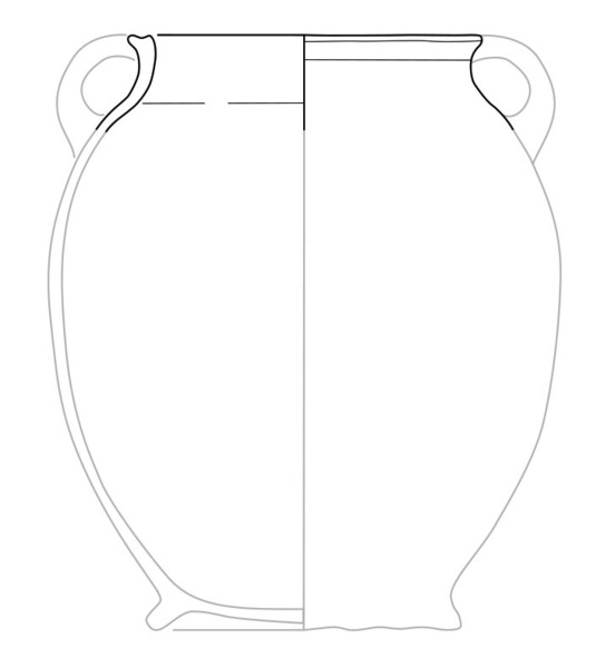 | 4b vorm | hoge pot met een ingesnoerde hals en een aan de bovenzijde afgeplatte rand, standring |