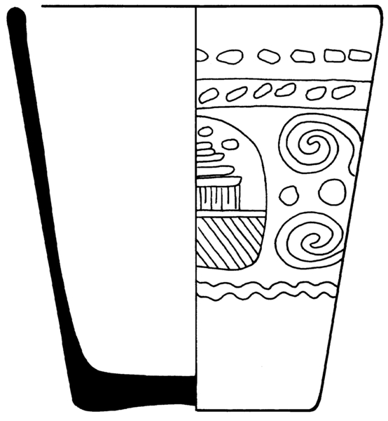 | 4b vorm | dikwandige conische beker, ook met radgravure, verdikte bodem, standvlak met (eventueel weggeslepen) pontilmerk |