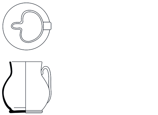 | 4b | peervormige kan met vloeiende overgang buik-schouder-hals met licht uitstaande rechte rand, standvoet |