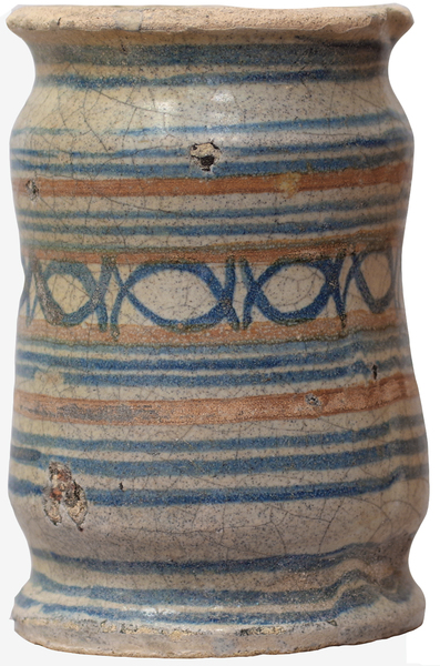 | 4b vorm | hoge, smalle zalfpot met ingesnoerde bodem en hals met uitgebogen rand, standvlak |