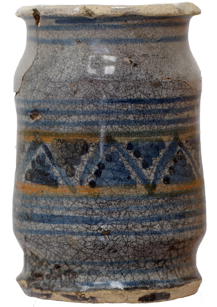 | 5c decoratie | kobaltblauwe en antimoongele beschildering uitwendig polychroom |