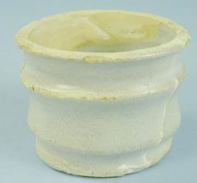 | 4b vorm | brede zalfpot met (vrijwel) cilindrische buik, ingesnoerde bodem en hals met uitgebogen rand, standvlak |