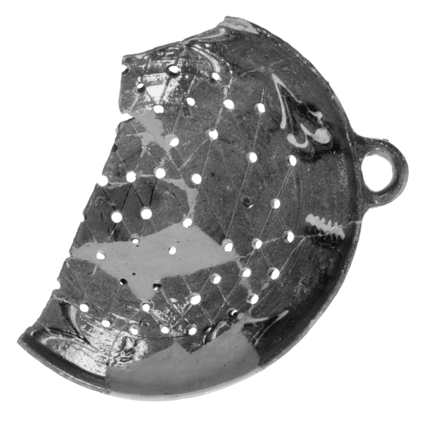| 5b afwerking (kleur/glazuur) | inwendig loodglazuur met koperoxide, uitwendig ijzerengobe |