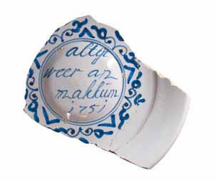 | 5c decoratie | tekst: altijt weer a z makkum 1751 inwendig: blauw |