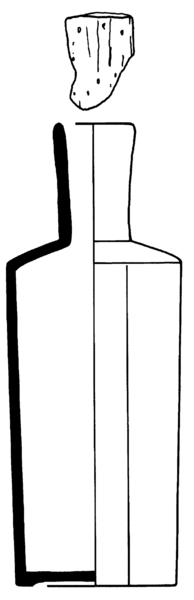 | 4b | parfumfles met twee platte- en twee afgeronde zijden, licht conische hals, contactvorm met naden, ook tekst in reliëf, standring of standvlak |