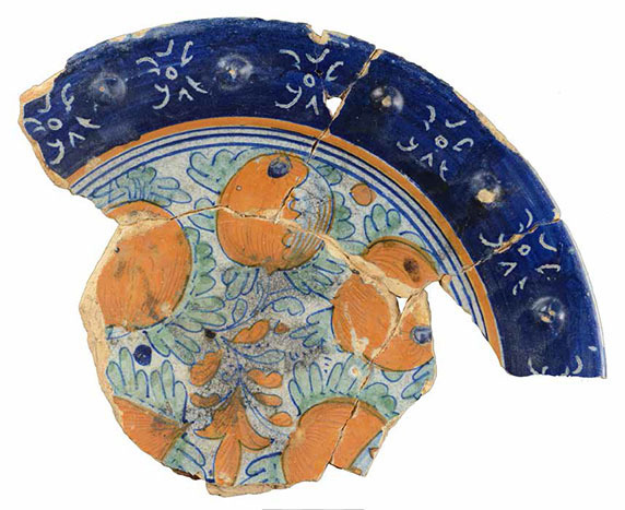| 5c | beschildering in blauw, groen en oranje; spiegel: granaatappels en bladeren; vlag: sgraffito-patroon inwendig: polychroom |