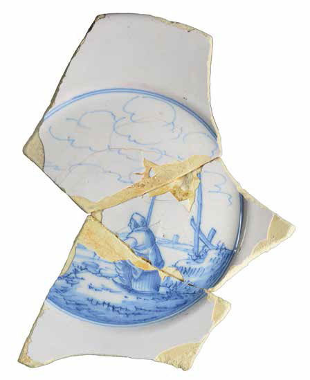 | 5c decoratie | beschildering in blauw; spiegel: landschap met visser blauw |