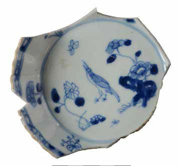 | 5c | bovenzijde: blauwe beschildering, vogel en bloemen onderglazuur blauw |