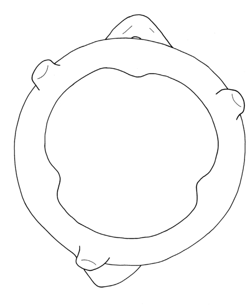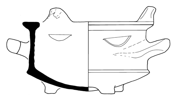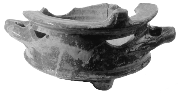 | 4b | komfoor met scherpe knik bodem-wand, naar buiten geknikte rand, uitgesneden luchtgaten en 'poten' op rand, poten |