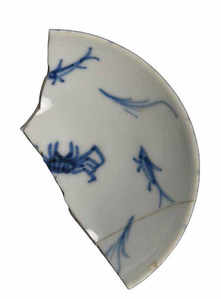 | 5c | blauwe beschildering; bovenkant: krab, vissen en zeewier; achterkant: visnetmotief onderglazuur blauw |