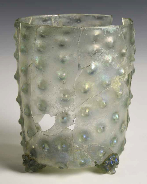 | 4b | cilindrische beker met knobbelpatroon of combinatie knobbel-netwerkpatroon, opgestoken bodem met pontilmerk, met noppootjes |