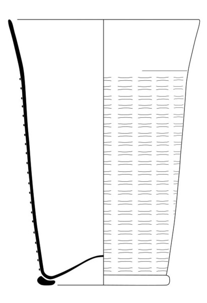 | 4b | cilindrische of licht conische beker met wafelpatroon, rechte lip, opgestoken bodem met pontilmerk, voetring |
