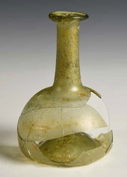 | 4b | bolvormige fles met lange hals en omgeslagen lip, opgestoken bodem met pontilmerk ook met verticaal of diagonaal ribbelpatroon |