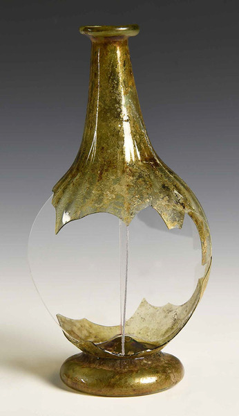 | 4b | druppelvormige fles, opgestoken ingevouwen voet met pontilmerk, ook met verticaal of diagonaal ribbelpatroon |