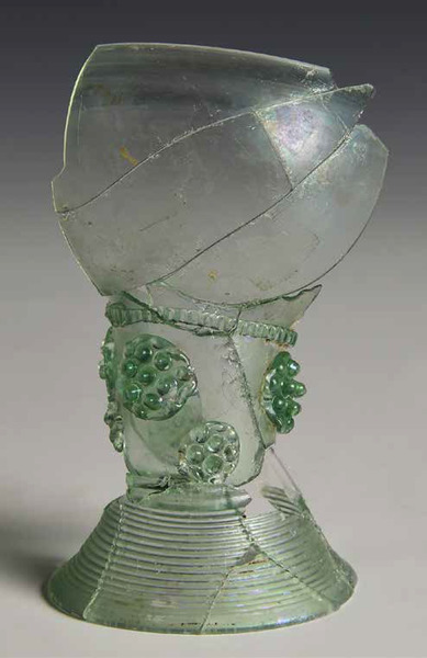 | 4b | roemer met ei- of tonvormige cuppa, geribde draad op de overgang naar de schacht en één of meer verspringende rijen braamnoppen, opgestoken bodem met pontilmerk, gewonden draadvoet |