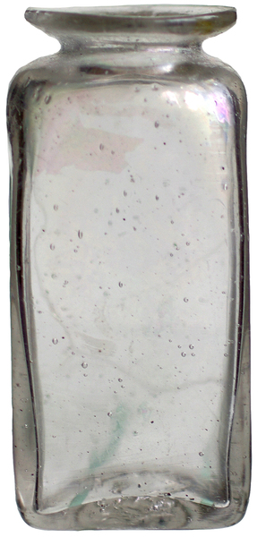 | 4b vorm | hoge vierzijdige medicijn- of parfumfles zonder hals en horizontale lip, opgestoken bodem of standvlak met pontilmerk |